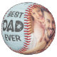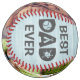 Best Dad Ever Custom Photo Personalised Name Softball features two of your favourite photos with the text "Best Dad Ever" in modern grey script and your custom text in the centre on a blue wooden background. Personalised by editing the text in the text boxes provided and adding your photos. PHOTO TIP: edit your photos prior to uploading to Zazzle with the subject in the centred. Designed by ©Evco Studio www.zazzle.com/store/evcostudio