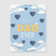 Happy Father's Day cute design, best dad ever text , among clouds and blue hearts in the sky, cute 3d cartoon greeting card