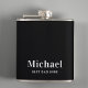 An elegant black flask for the best dad ever featuring his name monogrammed in classic white serif typography.