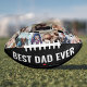 Cool fathers day football gift featuring stylish black background that can be changed to any colour, a photo collage of 12 family pictures for you to replace with your own, the saying "BEST DAD EVER", a cute red heart, and the childrens names.