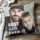 Throw pillow featuring your custom photos and the text "Best dad ever" as a white and light blue overlay in the bottom left corner.