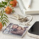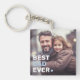 Keychain featuring your custom photo and the text "Best dad ever" as a white and light blue overlay in the bottom left corner.