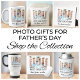 This father's gift travel mug features three photos in the shape of the letters "DAD", along with "Best Dad Ever".