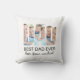 This father's gift throw pillow features three photos in the shape of the letters "DAD" along with the inscription "Best Dad Ever."