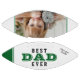 Best Dad Father Green Photo Football. Add your photo and names. The text is modern bold typography on white with green stripes. Sweet keepsake for a dad.