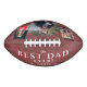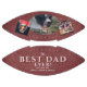 Modern Best Dad Red Leather Print Father 3 Photo Collage Football. Burgundy red leather print with 3 photos in oval and square frames - add 3 photos. You can change any text on the football or erase it. This personalised football is a perfect gift for a dad for Father`s Day, birthday or Christmas.