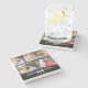 The coasters are gorgeous, a quality feel and heavy weight. They look like a precious archeological find. A rustic stone juxtaposed with a modern floral black and white print. I like the way the print goes slightly imperfect on the cut stone edges giving them a kind-of natural beauty.