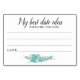 These charming best date idea cards will be the perfect addition to a wedding shower or at the wedding reception. This design features a combination of handwriting and block fonts in black and highlighted by a succulent bouquet. There is space available for guests to leave their favourite date night idea, and their name(s) on the front, and the names of the couple and their wedding date on the back.