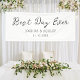 White wedding welcome banner or wall hanging sign with the quote "best day ever" in script calligraphy, the couple's names, and the date. All text is editable and can be personalised with a psalm, poem, or any message you'd like to add for this special occasion.