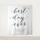 A beautiful statement item perfect as a backdrop for your ceremony, featuring the phrase "best day ever" in black modern calligraphy style font. Personalise with your names and wedding date. Use as decor in your home after your wedding.
