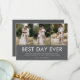 Celebrate your "Best Day Ever" by sharing your gratitude with our 3-Photo Wedding Thank You Card. This design features space for three of your favourite wedding photos, beautifully arranged alongside elegant "Best Day Ever" typography. Personalise it further with a heartfelt thank-you message to make it a unique keepsake for your guests.