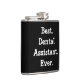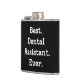 The flask itself is fine. It’s a cheap flask, obviously bought in bulk, however am prepared to overlook that. Given that it is a personalized item, I would have liked to have seen gift boxing instead of the generic packaging. Terrible printing, and/or quality. It’s a cheap, tacky vinyl. It is not cut straight and is also applied in a way that it is overhanging the bottom, causing the glue to catch on items and it will eventually roll and tear, damaging the wrap.