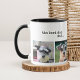 Add four of your favourite photos to this charming modern minimalist dog dad mug. It will be sure to put a smile on dad's face with his morning coffee or tea. Distressed typewriter text in a small size that says "the best dog dad" with a tiny paw print. Customise the text or replace dog with any dog breed name. Classic black and white with lots of space. A great gift for a dog dad who loves his pup and minimalist style.