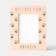 Modern pet etched photo frame featuring the saying "best dog ever", a scattering of paw prints, and your dogs name.