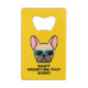 Frenchies, if your Dad loves his beer as much as he loves you, this credit card style bottle opener will make the perfect Father's Day gift for him. The design features a cartoon style illustration of a light fawn coloured french bulldog wearing blue sunglasses with the wording "Best frenchie Dad ever!" The design is the same on both sides and the wording can be changed.