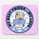A stick figure bride and groom who were just married sit in their wedding car surrounded by lavender hearts and text that reads "My Best Friend...My Love"! This cute stick figure wedding mousepad is a great gift for the new bride and groom!