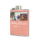 Peach design travel quote "adventures fill the soul" flask featuring three of your favorite travel or friendship pictures. This flask makes a wonderful keepsake gift for the person who you most love to have adventures with!
