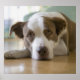 Adorable dog photography with dogs soulful gaze at the camera as he rests on the floor.