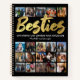 Personalised best friends notebook featuring a trendy black background that can be changed to any colour, the word "besties" in a faux gold foil script font, a friendship quote, your names, and a 20 square photo collage template for you to customise to your own.