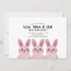 Cute bunny theme for a Best Friends or triplets birthday party invitation featuring three pink baby rabbits. Back with chequered pattern.