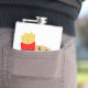 The flask itself is fine. It’s a cheap flask, obviously bought in bulk, however am prepared to overlook that. Given that it is a personalized item, I would have liked to have seen gift boxing instead of the generic packaging. Terrible printing, and/or quality. It’s a cheap, tacky vinyl. It is not cut straight and is also applied in a way that it is overhanging the bottom, causing the glue to catch on items and it will eventually roll and tear, damaging the wrap.