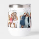 On a white thermal wine tumbler are 6 photos honouring women friendship with an elegant script on the bottom with the text, best friends forever where you can customise the title and photos to your liking.