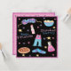 Featuring a tube of lipstick,nail polish,a pizza,a sleep mask, pyjamas and slippers in fun bright colours. Stars and hearts on black make this a really eye catching design and great for any slumber party sleepover.