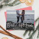 This sweet yet modern holiday pregnancy or birth announcement card features white calligraphy script over a full-bleed single, horizontal photo. The calligraphy script greeting on the front says "Best Gift Ever". This design accommodates a single, horizontal photo on the front of the card. On the reverse side you will find a festive red and white horizontal stripe pattern which can be removed or customised. You can also add another photo or text to the back by selecting "customise design further".