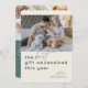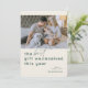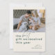 Present your baby to the world in style with this minimalist birth announcement this holiday season the header reads "Te best gift we received this year", which you can edit the last section, the sky is the limit. Featuring template spaces for 2 images and and a custom message on the back.