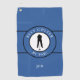 This bold blue and black golf towel features a strong male golfer silhouette framed inside a crisp black‑and‑white emblem with curved text reading “Best Golfer By Par!”. A coordinating centre stripe adds a clean, sporty finish, and the easy template lets you personalise the design with a monogrammed name, initials, or short custom text.