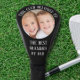 A black golf club head cover for a golfer grandmother featuring "This Club Belongs to the Best Grandma By Par" in white serif typography and a photo of her grandchildren.