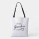 Celebrate Grandma with a tote she’ll carry proudly. One side features her grandchild’s photo framed beneath a hand-lettered “Grandma” and personalized “est. YEAR” in modern script—marking the moment she earned her favorite title. Flip it over to reveal a heart-outlined “Best Grandma Ever” design that radiates love with every errand, outing, or cozy day at home. This keepsake tote is perfect for groceries, books, or beach days. A heartfelt gift for birthdays, Mother’s Day, or just because. Personalize yours now for a daily reminder of the people she loves most.