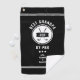 Elevate your golfing experience with our Customised Golf Towel. This unique design features two crossed golf clubs set against a crisp white circle, encircled by an elegant white accent ring. A matching ribbon on the clubs displays your choice of two or three of your grandfather’s initials in sophisticated white lettering. The phrase “Best Grandpa By Par” is prominently displayed above and below the clubs, accompanied by three stars and a customisable area for adding names in white.