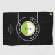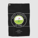 Best Grandpa By Par | Fun Father's Day Golf Towel This funny, custom golf towel features vibrant golf greens with a red flag, bordered by curved text that reads "Best Grandpa By Par" in a sleek, modern white font. Personalise it with a monogrammed name, initials, or custom text in matching white for an extra special touch. The solid black background makes the design pop, ensuring your grandfather stands out on the course.