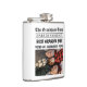 The flask itself is fine. It’s a cheap flask, obviously bought in bulk, however am prepared to overlook that. Given that it is a personalized item, I would have liked to have seen gift boxing instead of the generic packaging. Terrible printing, and/or quality. It’s a cheap, tacky vinyl. It is not cut straight and is also applied in a way that it is overhanging the bottom, causing the glue to catch on items and it will eventually roll and tear, damaging the wrap.