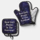 Awesome picture of stars, is featured on this oven mitt and pot holder set for Father's Day! With message, " Best Grill Master In The Universe!" on both, makes this a great gift for Father's Day, birthdays, or use yourself! Set has silver quilted heat protection and hanging loops too.