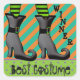 Fun and funky best Halloween costume contest winner stickers with witches boots and bright pattern background.