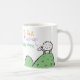 Mug with Postal Worker Mail Man trade or profession. Funny cartoon of a sheep on the top of a hill. The sheep says "Best Baaa None". Design repeats on both sides