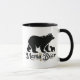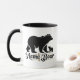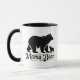 Black silhouette of a mother bear with a small cub walking beside, “Mama Bear” in bold script underneath, gold accents on edges.