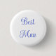 Button Pin casual fun fashion statement accessory printed with White Colour background and Best Man in Royal Blue Colour text typography lettering design by TheFabricSeal print on demand shop at Zazzle.com #ZazzleMade https://www.zazzle.com/store/thefabricseal TheFabricSeal©️Original.