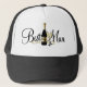 Good Hat but only ordered because of a ticking clock on Zazzle that stated if I order in the next two hours, I'd have the item 2 days later by paying for Express Delivery. Well, I pulled the trigger (paying more for Express Delivery than for the hat) and then left town for the bachelor party two days later without the hat. Arrived home to find it on my porch! Pretty quick delivery still, but only ordered because the website indicated I'd have it on time...Bummer. Looks great, really great.
