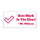 This positive rubber stamp design features the message "Best Mark In The Class!" and a custom teacher's name. It also features a decorative check mark icon. It could be used by a teacher or educator when marking assignments, to acknowledge that the student has done well.