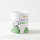 Mug for the best Maths Teacher. Funny cartoon of a sheep on the top of a hill. The sheep says "Best Baaa None". Design repeats on both sides.