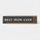 A sleek Best Mom Ever desk name plate featuring modern white typography on a dark background. All text and colors are fully editable. A stylish Mother's Day, birthday, or just-because gift that gives mom a permanent place of honor at the office or at home.