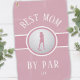 Best Mum By Par golf quote design in trendy white font features a female golfer silhouette set on a realistic golf ball image all on a pink background. The golf ball is placed on a coordinating pink circle outlined in white complemented by a matching band also outlined in white. Personalise with template to add custom monogrammed initials or short line of text. If you have any questions regarding this or any of my designs please contact beachpausedesigns@gmail.com. Makes a perfect gift for Mum for Mother's Day, Birthday or Holidays! Custom requests accepted.