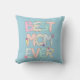 Celebrate Mother's Day with this cute blue throw pillow that features whimsical text that reads 'Best Mum Ever.'