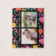 This mum puzzle features a modern script text design with a family photo collage with vibrant flowers on a black background. Personalise it with your family photos.