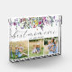 Pretty Best Mum Ever script saying with beautiful watercolor wildflowers. Hand lettered script calligraphy and a place for three special photos. Add kids names to make this a keepsake she will love. See coordinating items in our shop, Enchanted Finch.