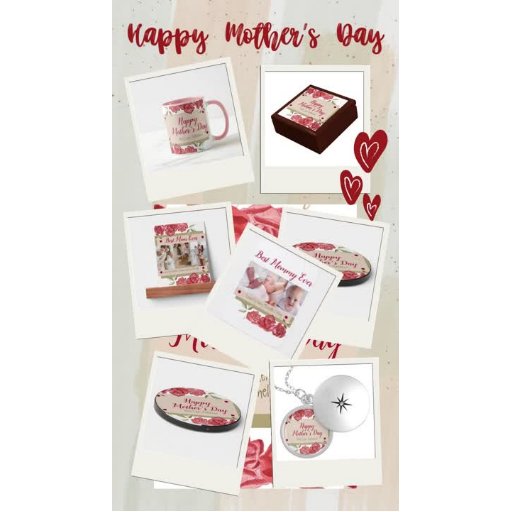 Modern trendy pretty floral frame of roses in red, pink and green colours and photo collage for your Best Mum Ever. Just perfect for a beloved and modern mum. Personalise your best photos with mum and names.