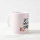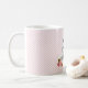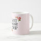 Mother's Day mug featuring Best Mum Ever quote surrounded by floral bouquets against a striped pink background.